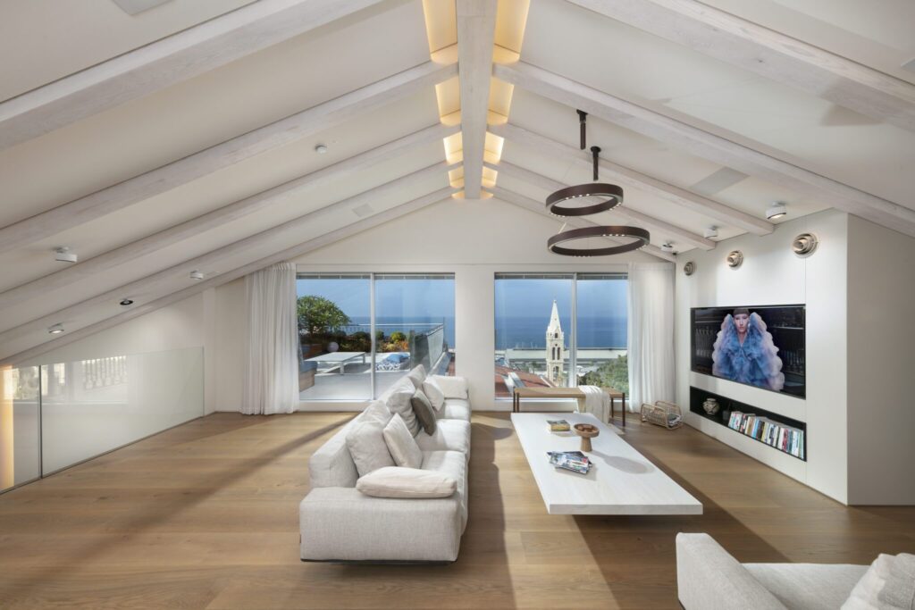 Renovation of a duplex with a complex roof and a beautiful sea view.