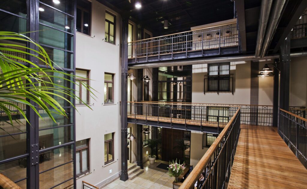 A preservation building that was converted into a town house with an elevator, a garden and a beautiful roof.
