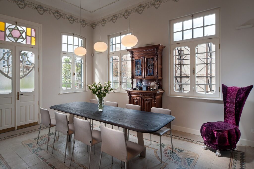 A strict conservation building that was converted into a luxury hotel with 11 rooms, a swimming pool, 2 restaurants and a parking lot.